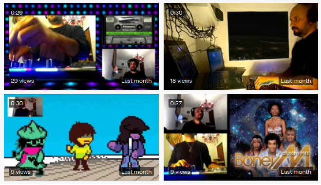 He pinchado especialmente tech house y deep house, con algo de pop, acompañado de trozos de películas o arte de pixeles. Puedes ver éstas capturas de vídeo y las setlists de cada sesión.