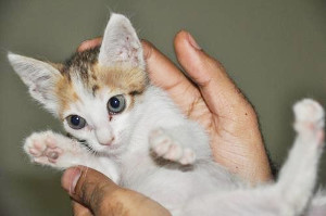 En Doha un compañero de trabajo me contó que había visto en el segundo subterráneo un par de gatos, una madre y su cachorro, y que no sabía qué hacer pero que les gustaría ayudarles. Les puse comida y agua algunos días, pero no conseguí acercarme a menos de tres metros de ellas, eran muy desconfiadas. Días después nos contaron que la gente que trabajaba en el edificio había encontrado a la cachorra, la tenía en una caja de cartón en la sala para empleados del subterráneo. Allí la encontré yo, junto a un platito de curry que le habían dado de comida, y me la llevé a casa.