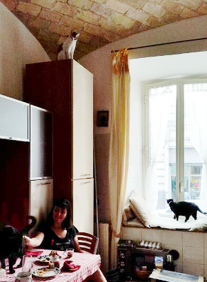 En Roma el departamento era bastante más pequeño así que las gatas tenían que convivir más. En esos meses que pasamos en Roma, Kittycat la gata de Qatar pasó de ser una gata salvaje a ser una gata mucho más cariñosa, casi tanto como Trufa. Conserva su desconfianza pero es mucho menos que antes.