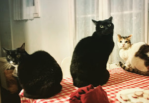 Vivieron muchos años con nosotros, luego cuando emigramos a Europa, que no fue para vivir en Alemania sino en Barcelona, ambas fueron a vivir al campo a casa de los papás de Fabiola. Rinrin era la regalona de mis suegros, a él se le subía a la espalda, tomaba sol en una parra, les acompañaba en el invierno en su habitación, fue feliz allí hasta que murió de viejita. Mutter también era la regalona pero por otros motivos, era fiera cazando ratones lo que tenía a mi suegro muy contento. Alguien la mató cruel e innecesariamente con carne envenenada, cuando ya era bastante adulta. Mi suegro enterró a ambas en su patio.